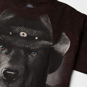 The Mountain garment dyed cowboy lab graphic on men’s t-shirt All products produced by The Mountain will have a Mountain company stamp at the neck of the t-shirt, sweatshirt, hoodie, etc. If you receive a counterfeit product, please contact Amazon so they can take action against the counterfeiter and ensure you receive a genuine product.